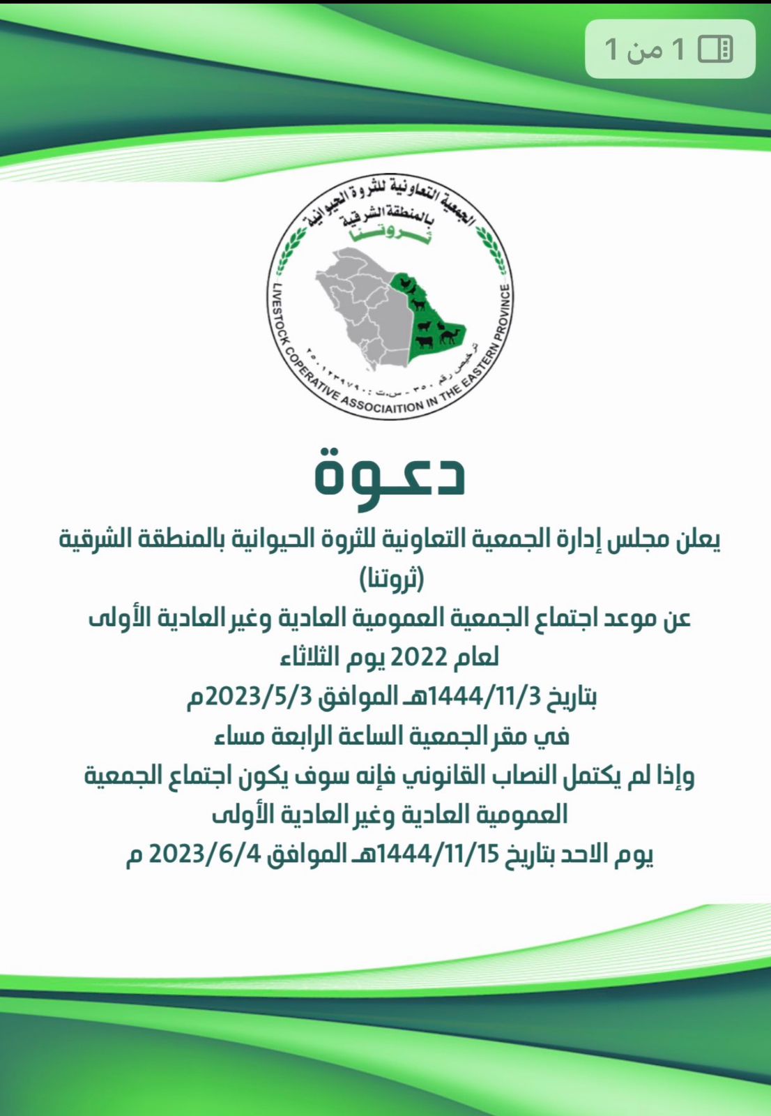 الجمعية التعاونية للثروة الحيوانية بالمنطقة الشرقية